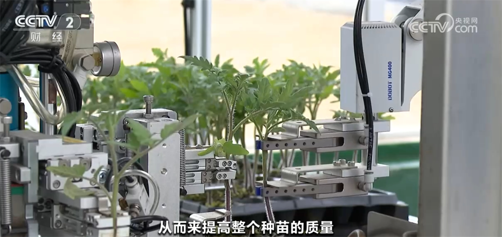 正在桐乡市数字种苗将来农场,茄果类嫁接机械人正通过两侧的机械悬臂,精准夹起预备嫁接的番茄苗,将其放置正在转盘的夹合器两头。跟着机械轴的动弹,左侧番茄苗的顶端被剪去,左侧番茄苗的下端被削成楔形。最初,处置好的接穗和砧木的暗语被快速精准地贴合正在一路。短短三秒钟,便完成了整个嫁接过程。